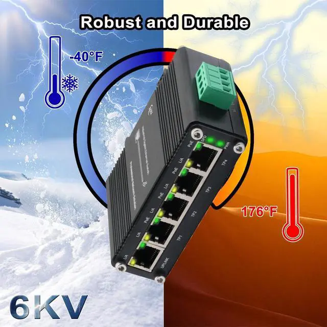 ^^ Reliable Industrial PerformanceSupports 802.3 x flow control, CE/FCC certified, and operates reliably from -40F to 176F for industrial automation and outdoor use.