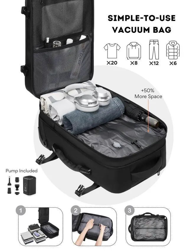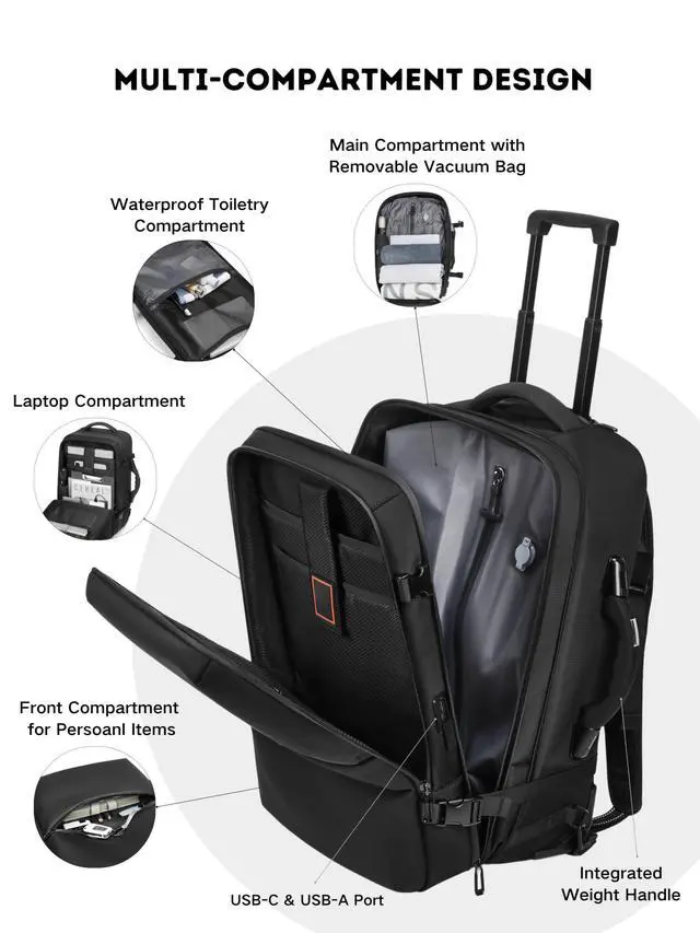 ^^ Expandable Storage: Maximize packing space with an expandable design that holds all your essentials, including a laptop, clothes, and accessories. ^^ Multifunctional for