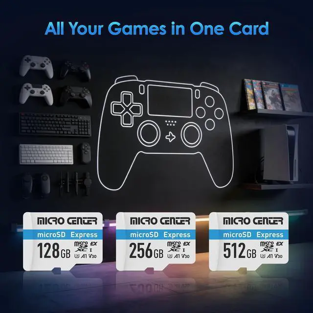 Turbocharge your handheld gaming experience with next-gen tech ^^ Compatible with smartphones, tablets. drones, action cameras, handheld gaming devices, and laptops and Devices that include microSD Express, microSD UHS-l, and microSD UHS-ll slots ^^ Engineered with next-generation PCIe Gen 3x1 microSD Express technology with up to 880MB/s read speed and 770MB/s write speed for faster game loading ^^ Ready for future products with a PCIe-NVMe interface; performs at UHS-I speeds with microSD UHS-I and UHS-II devices ^^ This Micro SD Card is waterproof, shockproof, temperature proof and X-ray proof