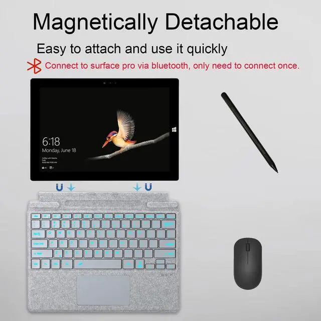 ^^ Magnetic Attachment: Magnetic removable attach or detach. Easily switch between Surface Pro tablets and laptops. Multi angle adjustment to meet your different usage needs in various scenarios.