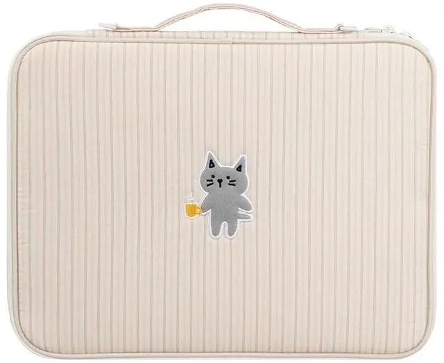kimhachan Stripe Kitty Laptop Pouch with Handle ^^ Vintage-Inspired Fabric Cute Notebook Case Sleeve for women (Pink x Beige, 15 inch)