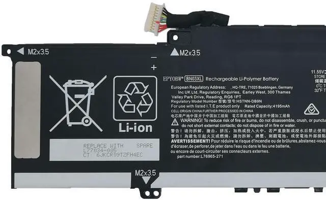 Condition: Brand New. ^^ Replace Part NumberBN03XL HSTNN-DB9N HSTNN-OB1O L73965-271 L76965-2C1 L76965-AC1 L76965-271 L76985-271 L77034-005 L770374-005 ^^ Compatible with Laptop Models For HP Pavilion 15-eh0011la Series; For HP ENVY X360 13-AY 13-AY0000 13-AY0065AU 13-AR 13-ar0001AX 13-BA 13-BA0000 13T-BA000 13T-BA100 13T-BD000 13T-BD100 13M-BD 13M-BD0023DX 13Z-AY000 13Z-AY100 Series; For HP ENVY X360 15-ED0000 15-EE 15-ee0500AU 15-EU0XXX 15-EU0003CA 15-ES 15-ES0003CA 15M-ED 15M-ED0013DX 15M-ES 15M-ES0013DX 15M-EU0023DX 15Z-EE000 15Z-EE100 15Z-EU000 15T-ED000 15T-ED100 15T-ES000 15T-ES100 Series; For HP ENVY 17-CE2055CL Series. ^^ Purchase SkillsPlease open the back cover of the laptop before ordering and make sure that the original battery model is consistent with the listing. After getting the battery, please install the battery correctly, make sure that the battery connector is firmly connected to the laptop motherboard, and use the original charger to charge the laptop. Discharge the new battery to 5% (not 0%), then charge and cycle 3-4 times to wake up the new battery. ^^ EPYOBW PromiseAll EPYOBW's batteries are certificated by UL/CE/FCC/RoHS. Our batteries are tested by strict quality control standards to ensure that the capacity is true, stable current, low self-discharge. And we also have short circuit, overheat, and overload protections.