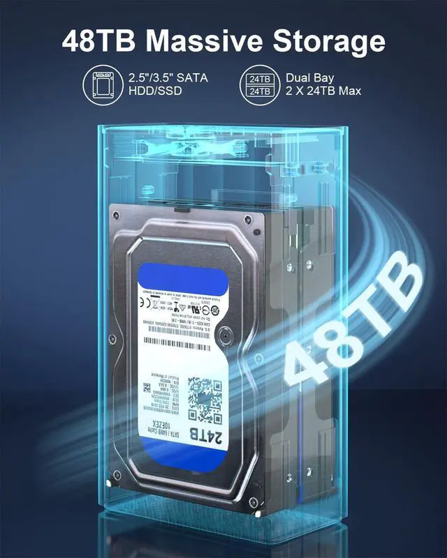 Professional Storage Expansion Made SimpleOrganize, access, and protect your growing data with this high-performance dual bay hard drive enclosure. Designed as a straightforward and powerful external hard drive enclosure solution, it allows you to easily convert internal 2.5" or 3.5" SATA drives into a centralized, high-capacity storage hubperfect as a DAS (Direct-Attached Storage) for home or office use. Efficient Design for