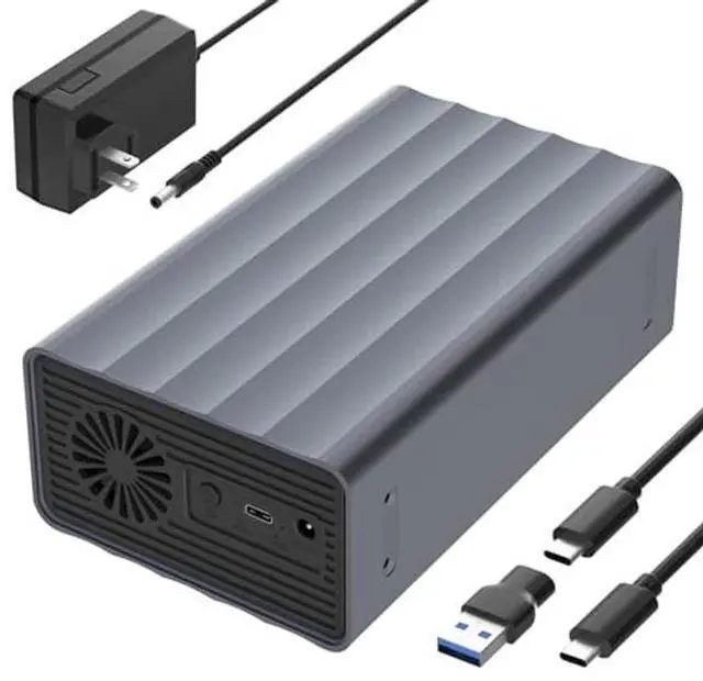 Whats in the Box: 1x Dual Bay Hard Drive Enclosure1x 12V DC Power Adapter1x 2-in-1 USB 3.0 Cable (USB-C to USB-A)1x Set of Mounting Screws2x Non-Slip Rubber Pads
