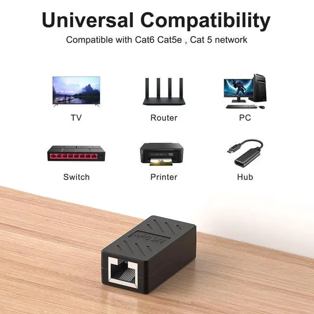• Ethernet coupler can speed up to 1 GbpsFemale to Female Ethernet coupler jack is compatible with Cat8 Cat7, Cat6, Cat5e, Cat5 network cable.