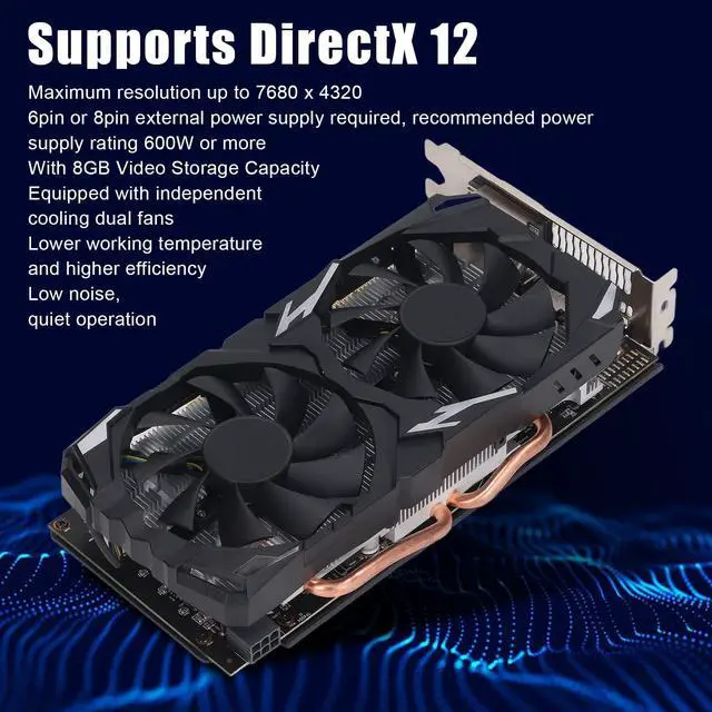 ^^ [High Performance] The core frequency of the graphics card is 1284MHz and the memory frequency is 7000MHz, which is smooth and stable, and can effectively meet your needs. ^^ [Efficient And Silent] Gaming graphics card comes with 8GB video storage capacity and is equipped with independent cooling fans for lower working temperature, higher efficiency, low noise and quiet working.