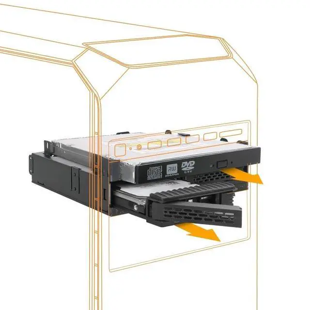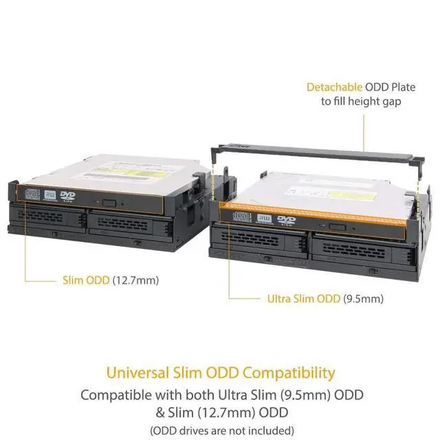 Rugged metal housing with durable ABS caddies for maximum security and protection ^^ Fits 2x 5mm-15mm 2.5 SATA HDD/SSD & 1 x Ultra Slim / Slim optical disk drive (ODD) ^^ Fits any external 5.25" drive bay ^^ Multi-Flow Technology provides excellent passive cooling ^^ Accommodates 2.5" drives with 5mm, 7mm, 9.5 mm, 12.5 mm & 15mm height