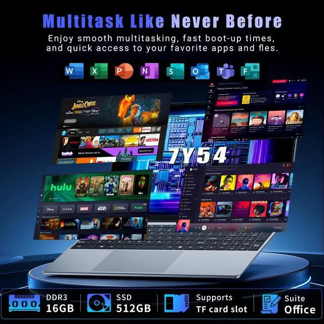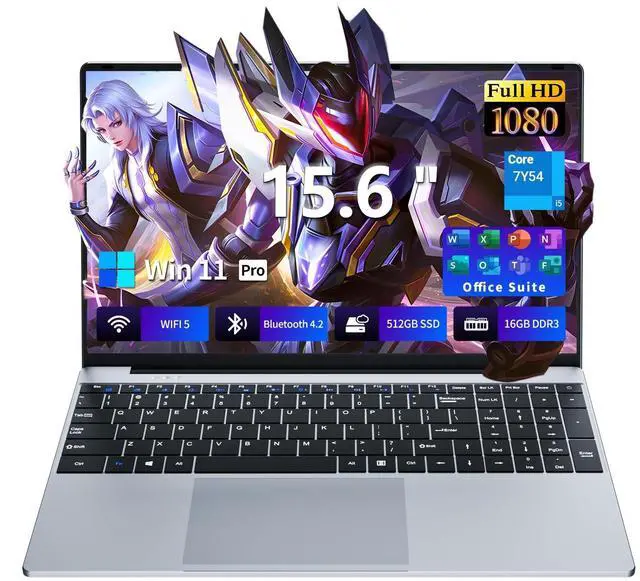 Powerful Performance & Ready-to-Work Productivity Suite: Unleash efficiency with this 15.6 inch laptop, powered by an Core i5-7Y54 processor (up to 3.2GH z), 16GB RAM, and a 512GB SSD for fast multitasking. It arrives pre-installed with Win 11 Pro and a Office suite, so you can start creating documents, spreadsheets, and presentations right out of the box. This fully-equipped laptop computer is your all-in-one solution for work and study. ^^ Immersive FHD IPS Display for