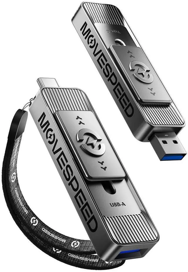 Dual-Port Beast ModeMOVE SPEED SP05 Solid State Drives slays with push-pull USB 3.2 + Type-C portsplug either side, no flipping, no drama. Yeet 1GB files in 2 seconds. Upgraded zinc alloy armor keeps it icy cool and looks like a cyberpunk gadget drop-proof metal vibes. ^^ 3-Stage Push-Pull PerfectionGlide the slider with a satisfying clickeffortlessly switch between USB-A and USB-C in one smooth motion. No lost caps, no broken ports, just pure buttery-slick vibes. Survives gym bags, chaotic travel, or desks buried under half-empty coffee cups.
