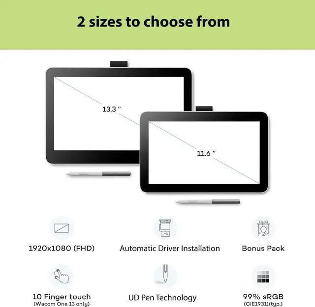 The Wacom One 12 graphics drawing tablet helps the digital arts beginner illustrate, edit images, or design with a natural feel of pen and paper. Whether you're sketching, painting, creating animations, or communicating your ideas, this full-color 11.6 HD graphics tablet is equipped with everything you need to express your artistic vision. Featuring a thin and light design, this creative pen tablet includes a fully-laminated anti-glare screen and its compact size is perfect for anyone with creative dreams but limited desk space. The drawing pad with display works with Windows PC, macOS, and some Android devices, and comes with the battery-free Wacom One pen.