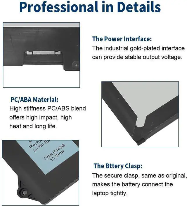 ^^ SECURITY: Emanjor 63Wh RJ40G Laptop batteries have passed strict intelligent detection, such as short circuit protection, over voltage protection, discharge protection, over current protection, which is very important for batterys use cycle and safety. All batteries are equipped with high quality material to ensure good performance. CE, FCC, RoHS certificated ^^