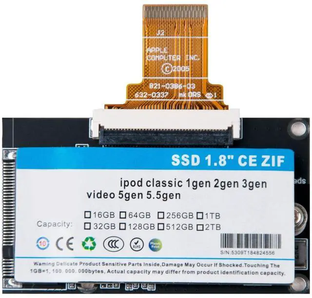 The MK1634GAL 512 GB ZIF SSD is a meticulously crafted solid-state drive upgrade solution designed for the 5th to 7th generation iPods. It not only significantly enhances the performance of your iPod, providing a smoother operational experience, but also is perfectly compatible with classic iPod models, ensuring a seamless upgrade. This 512 GB high-capacity SSD gives you ample space to store precious data such as music, photos, and videos, easily overcoming the frustration of insufficient storage. The upgrade process is simple and convenient, requiring no complex operations to quickly expand your iPod's capacity and breathe new life into it.