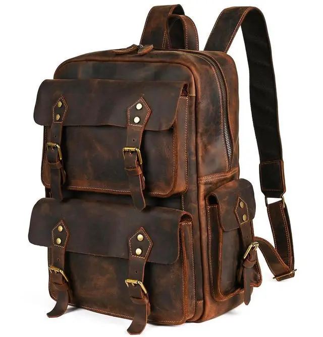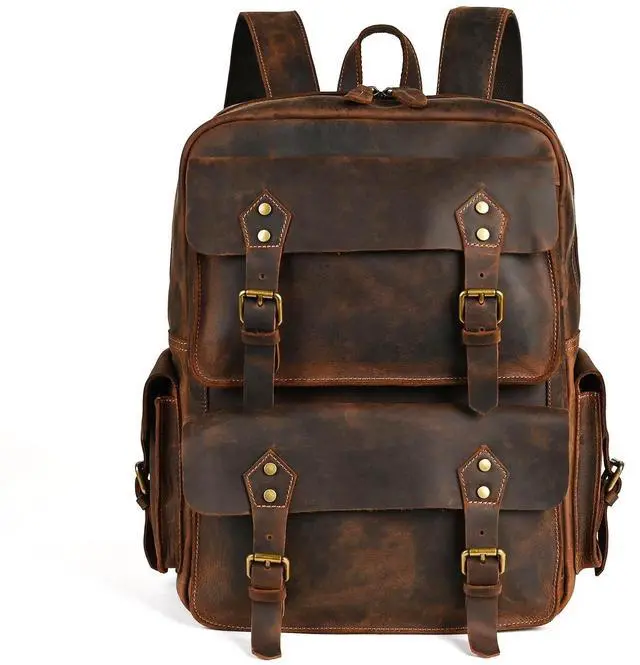 Material: This bag is made of quality genuine crazy horse leather trim. The premium quality ensure the long lasting durability. The crazy horse leather is made of high-end top layer cowhide material, with a thickness of 2.0 mm, which is solid and durable. And the quality solid hardware wont gather rust easily.