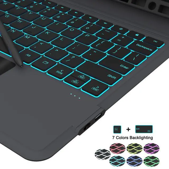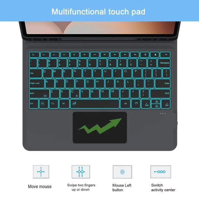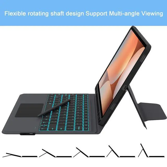 Note: The Tablet and S Pen are NOT included ^^ Backlit Keyboard Tab S10 Plus S9 Plus S9 FE Plus - Tab S10+ plus tablet case with keyboard Type comfortably and accurately using the familiar laptop-like keyboard. Auto sleep and wake function not only can reduce daily charging, but also helps to extend the battery life of the tablet. Flexible keyboard keys for more responsive and accurate typing, US layout, with a full row of shortcut keys and well-spaced 3 level backlit keys, the 3 brightness levels let you work comfortably on the go, day or night, anytime, anywhere ^^ Multi-Touch Trackpad Laptop-Like Keyboard - Keyboard case for Galaxy Tab S9 plus/S9 FE plus 12.4 -inch has an integrated trackpad that perfectly adapts to system, with various touchpad gestures, providing a comfortable usage experience while clicking, scrolling, and swiping through content effortlessly. Allows you to turn your Samsung Tab S10+ Plus into a real laptop and is very convenient for your typing, watching, working, and carrying without a mouse needed ^^ All in One Bluetooth Keyboard with Trackpad Tab S10 Plus - Ergonomic touchpad Galaxy S9+ 12.4" wireless keyboard with trackpad uses the familiar multi-gesture control tablet for precise touchpad responsive control of your S9 Plus/S10+ tablet navigation without the need for a separate mouse, Multi-touch trackpad allowing you to Use it like a laptop to edit documents, navigate applications and build presentations with unmatched speed, precision and accuracy ^^ Multiple Angles Viewing Stand & S Pen Holder - for Samsung Galaxy Tab S10+/S9+/S9 fe+ Plus Keyboard Case with S pen holder & 3 different adjustable horizontal stand angles groove allows you to easily use your Samsung tablet for typing, note, watching video, etc.