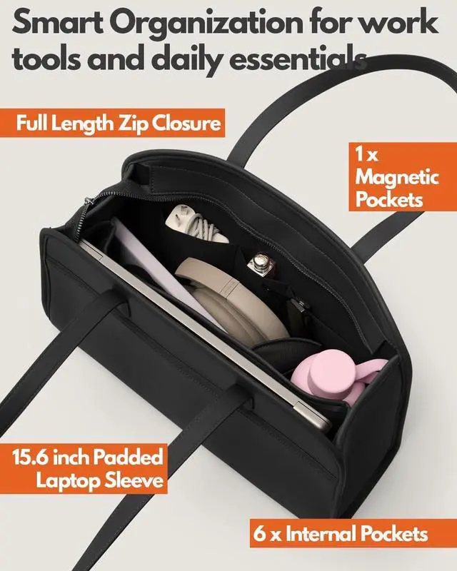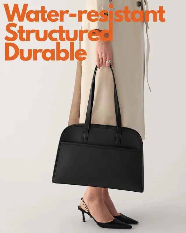 Stylish & Functional - An over-the-shoulder tote work bag for women who do not want to compromise between function and style. This structured computer purse is perfect for work, business trips, meetings, college, and more. ^^ Size - L 16.6 x H 11.2 x W 5.7. Durable and comfortable to carry with the handle drop length of 11 inches. ^^ Large Capacity- this classy bag features a spacious design with multi-functionality. 1 x outer magnetic buckle pockets for easy and quick access. Full-length metal zip enclosure to keep your belongings safe and secure.