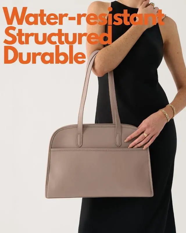 Stylish & Functional - An over-the-shoulder tote work bag for women who do not want to compromise between function and style. This structured computer purse is perfect for work, business trips, meetings, college, and more. ^^ Size - L 16.6 x H 11.2 x W 5.7. Durable and comfortable to carry with the handle drop length of 11 inches. ^^ Large Capacity- this classy bag features a spacious design with multi-functionality. 1 x outer magnetic buckle pockets for easy and quick access. Full-length metal zip enclosure to keep your belongings safe and secure.