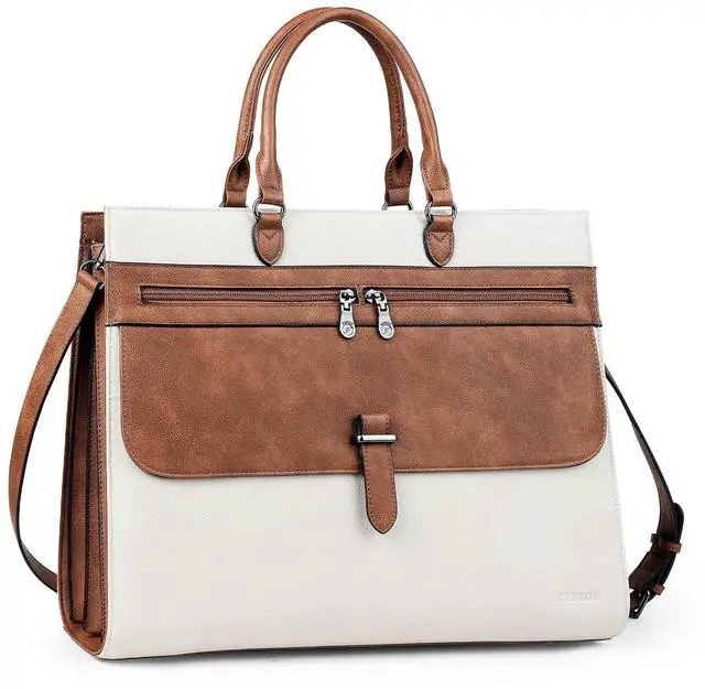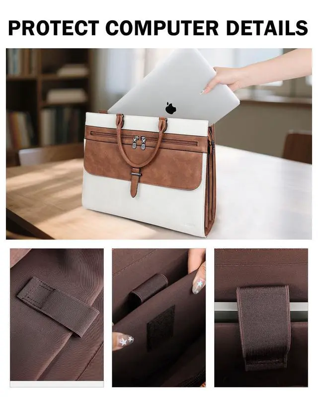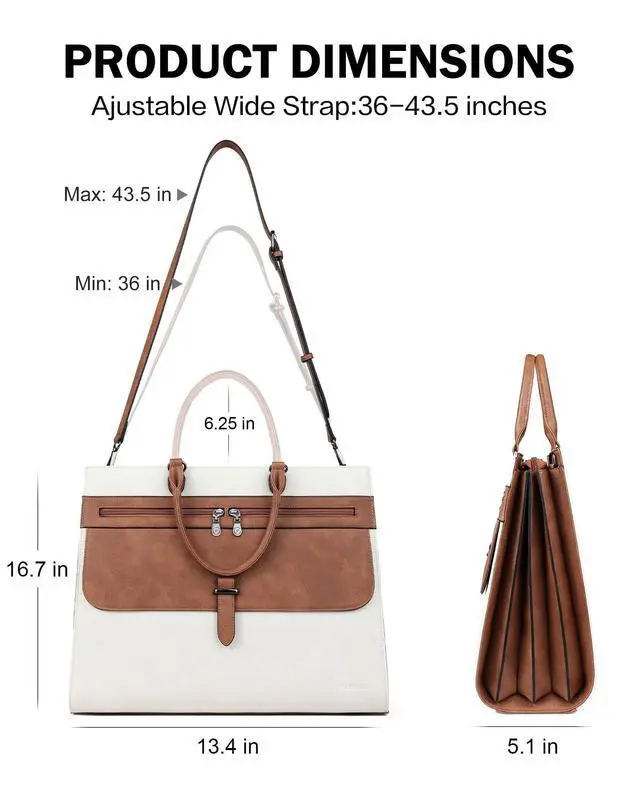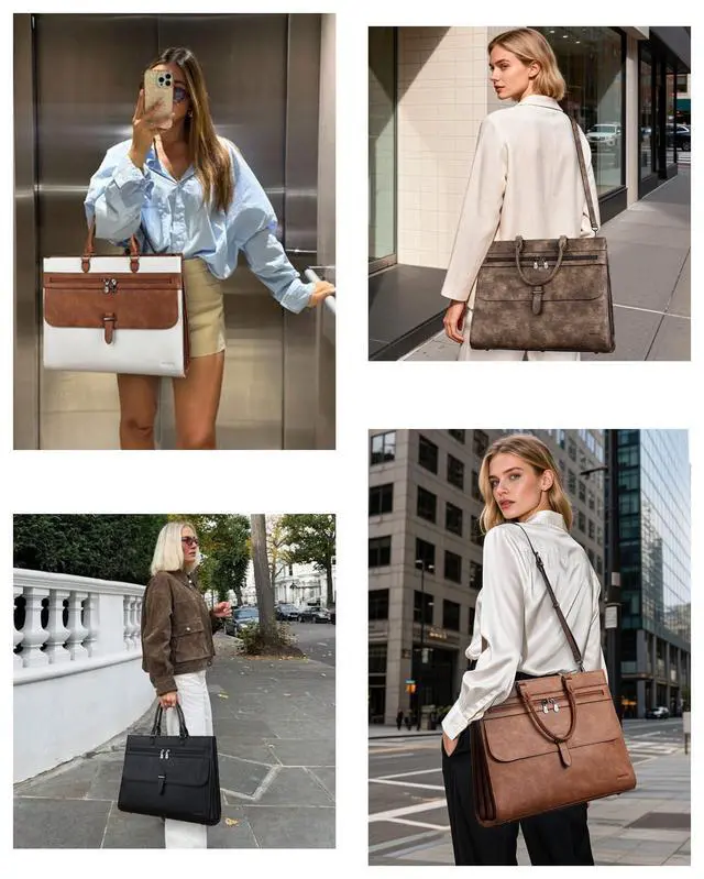 Quality Material & Refined Craftsmanship: Crafted from premium synthetic leather, this briefcase is both durable and sophisticated. The core-filled short handle ensures comfortable carrying, while all hardware, including the logo-embossed metal zipper pulls, is rust-resistant. A convenient luggage strap allows you to securely attach it to your suitcase, freeing your hands during travel. ^^ Spacious & Practical DimensionsDesigned with ample space, this bag easily accommodates a 15.6 -inch laptop in its main compartment. Multiple internal organizers and the expandable accordion sides provide flexible storage. The front flap pocket is perfectly sized for A4 folders, ensuring all your work essentials and personal items from your tote bag or laptop purse are well-organized. ^^ Professional Design for Discerning Women Attention to detail elevates this bag. The decorative metal buckle on the front flap, the adjustable shoulder strap for comfortable carrying, and the structured silhouette make it a versatile briefcase and messenger bag. It meets the practical needs of modern professionals while exuding a polished, confident style suitable for businesswomen and commuters.