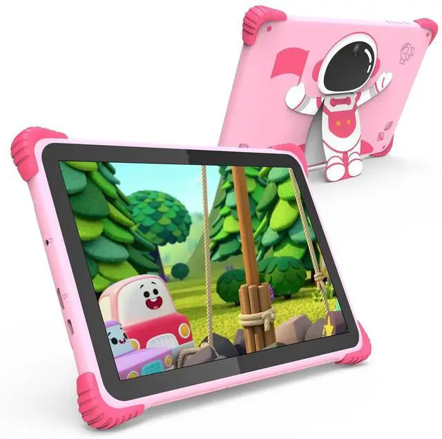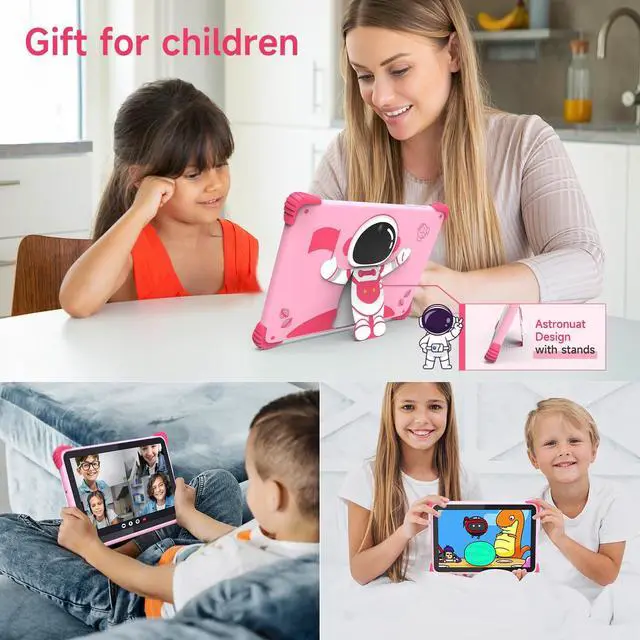 Foldable stand design +Dual camera+: Our 10.1 -inch kids tablet features an adorable Astronaut Design and a convenient foldable stand. The 5MP + 8MP dual camera enables kids to take pictures, have video chats, and enjoy classes effortlessly. Great gift for kids 3-12.