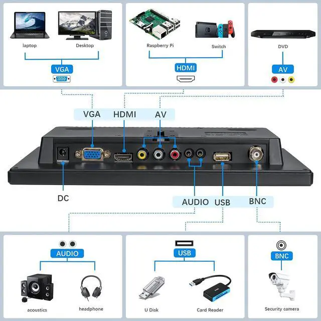 ^^ Covering All Your Bases This 10.1 inch small hdmi monitor, being lightweight, and simple to set up, stands out as an ideal option for surveillance purposes. No matter if you're utilizing it to keep an eye on your residence, workplace, warehouse, or any other area, this high-performance monitor provides all the functionality required.