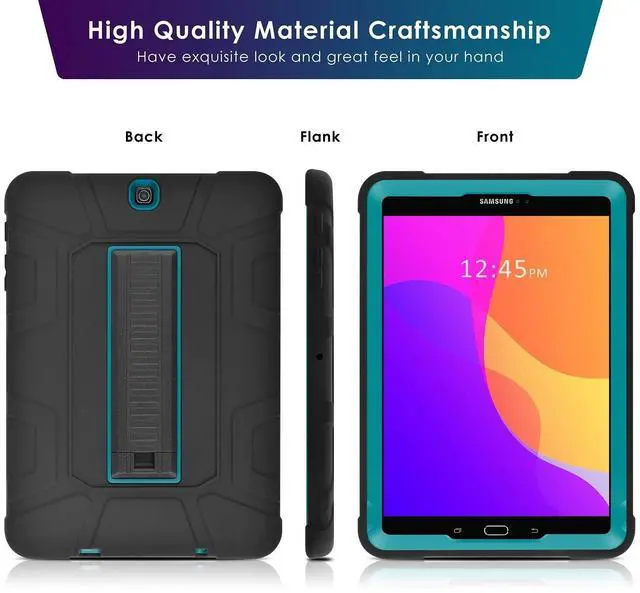 [Warm tips: NOT include build-in screen protector]. This hybrid heavy duty shockproof SM-T810 case provides total full body protection against scratches, shocks, fingerprints and dust. ^^ Adjustable Multi-angle Viewing-for Galaxy Tab S2 9.7 inch cover for SM-T815 could be adjusted to two comfortable angles and make your tablet works like a laptop, so it's perfect for typing and watching videos. Free your hands for other entertainments to avoid any joint pain. ^^ Precise Hole Cutting-Shockproof Cover for Galaxy Tab S2 9.7" has accurate hole cutting allows easy access to all buttons, controls & ports without having to remove the case. All sockets, ports and buttons are accessible without removing the case. ^^ Military Grade Protection & After-sales Service-for Tab S2 9.7 inch heavy duty tablet cover enhanced drop protection with extra shock absorption to protect your precious device. A variety of bright colors for your choose. If the item you've received is defective (not included man-made damage), don't hesitate to e-mail us for replacement or refund.