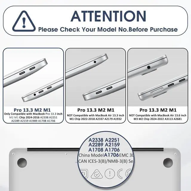 Allows your MacBook Pro 13.3 inch to open more than 90 degrees and allows full access to all functions. ^^ Complete Protection Set - 2019 macbook pro 13 inch case includes soft color-matched keyboard cover & protective screen protector in package. All thses cases we provide 1 year warranty, please feel free to contact us if you have any question.