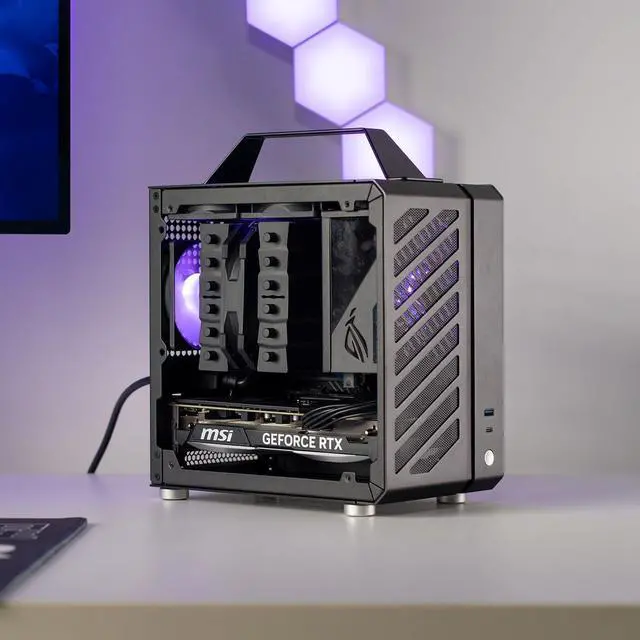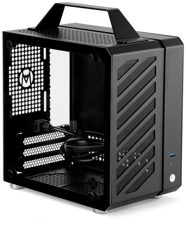 Compact & Portable 9.9L ultra-small form factor with an aluminum handle, ideal for space-saving setups and on-the-go use. ^^ Broad Compatibility Supports ITX/DTX motherboards, SFX PSUs, 135mm air/120mm liquid cooling, and GPUs like RTX 3060/4060 series. ^^