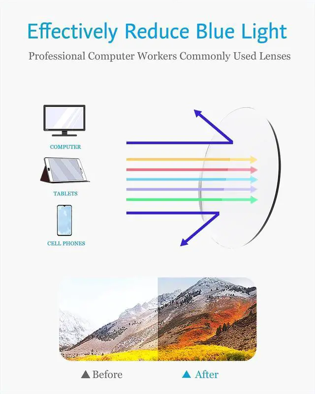 REDUCE EYE STRAIN- Enjoy your digital time without worrying about eye fatigue, blurred vision, or headaches. ^^ ANTI BLUE LIGHT - Cut 90% of the blue light. Relieving eye fatigue, dry and vision falling. ^^ BETTER SLEEP - Reduce eye strain and headache, so you can enjoy a restful deeper sleep.