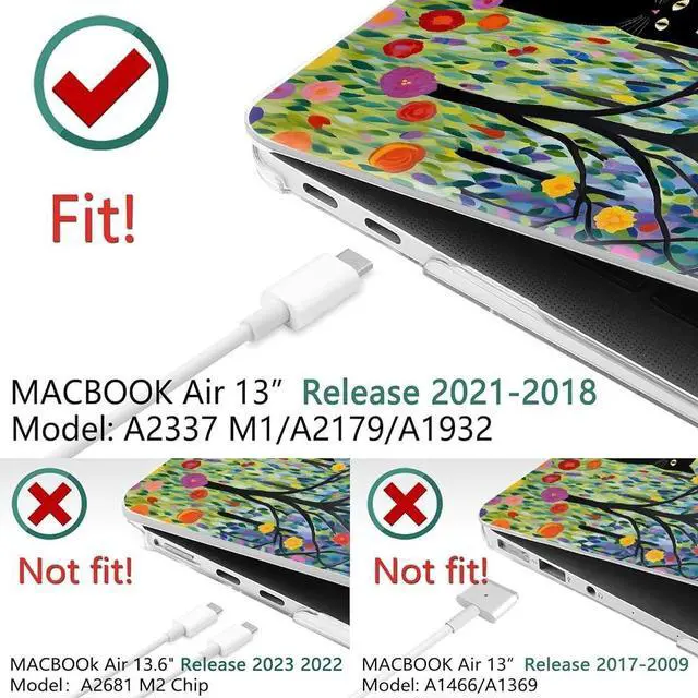Compatible with: Not fit for 2022 New Arrival For MacBook Air 13 [ 13.6 inch ] Apple M2 chip with Liquid Retina display & Touch ID. Not fit For MacBook Air 13 inch A1466 A13692010-2017 Release). Two pieces snap on design, easy to install and take off. It allows full access to all ports, Touch Bar and Touch ID function. Our laptop Hard Shellanti-slip silicone feet at the bottom shell, it can keep your device firmly in place all the time, Featuring two rows of bottom ventilation, allowing safe heat disbursement to keep your device cool, Featuring all-inclusive design to fully protect your device from drops, downs, scratches, etc from daily using. Ultra slim light weight hard case will not add any weight to your Apple MacBook. You could use while you are working, traveling, studying or playing game