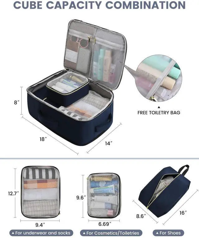 Made of high-density waterproof material, it's perfect for your damp clothes or toiletries, ensuring everything else stays dry. ^^ Fly with Ease Sized right at 18*14*8 inches, it's not just a favorite for major airlines like American Airlines, Delta, and JetBlue; it's also a breeze at security checks. Slide it under your seat or pop it in the overhead bineither way, it's a snug fit. ^^ Tough Build, Easy on Your BackThose premium zippers? They're designed to withstand the rough and tumble of travels. Reinforced stitching ensures longevity.