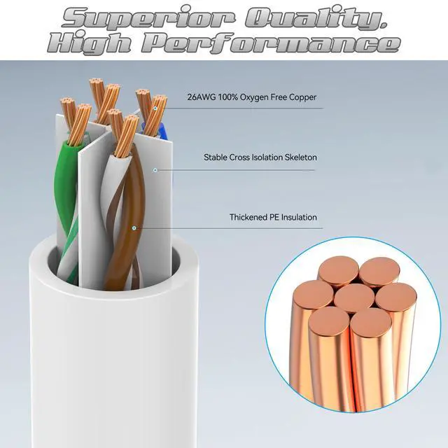 Premium Quality: Constructed with a 26AWG pure copper core, PVC jacket, UTP (unshielded twisted pair) design, and gold-plated RJ45 connectors, ensuring minimal interference and latency for optimal data transmission ^^