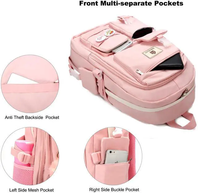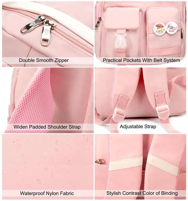 Material &Smooth Zipper: The campus backpack is made of waterproof, ultra-lightweight, high density nylon fabric and cute printing polyester lining. The metal zippers closure are used by the premium quality zippers to ensure the long-lasting usage ^^