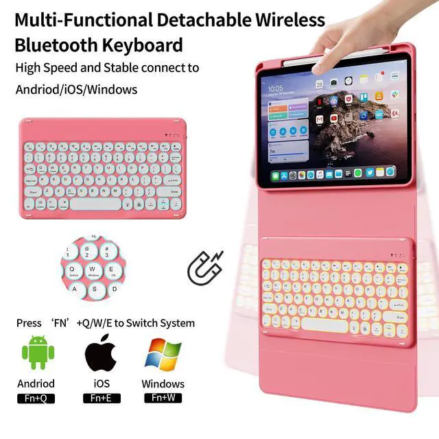 About Our Service: If you have any questions, please feel free to contact us via message, we will help you at any time. Package including 1 x case for iPad, 1 x wireless BT keyboard, 1 x Type-C charging cable, 1 x user manual. Please kindly note tablet and pencil are not included