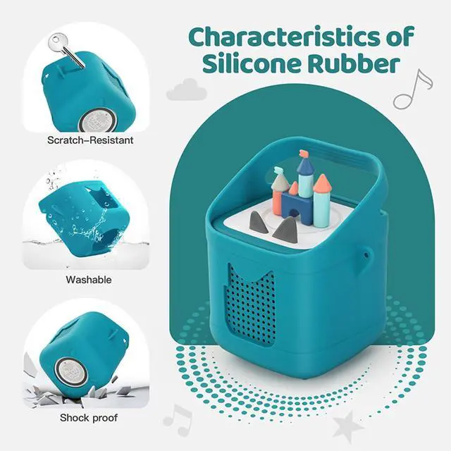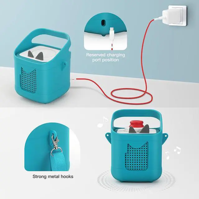 ^^ EASY TO CLEAN AND DUSTPROOF - The smooth silicone surface is incredibly easy to wipe clean with a damp cloth, making it ideal for handling by little hands. It resists stains and dirt, ensuring your device stays fresh through all your adventures, from playdates to road trips. ^^ CARRYING HANDLE & DETACHABLE STRAP OPTION - Featuring a convenient, one-piece integrated handle, you can easily carry the speaker anywhere. The case also includes secure holes for an optional adjustable shoulder strap (included), offering even more portability on the move. ^^ ENHANCED GRIP AND COMFORTABLE TEXTURE - The soft, flexible silicone material provides a non-slip, comfortable grip for small hands, making the device easier and safer to hold.