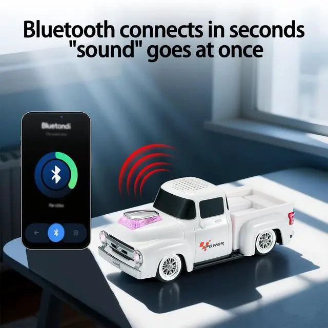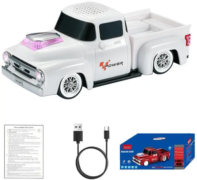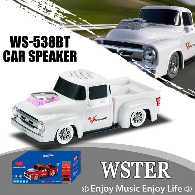 Retro Pickup Truck Design with Movable Wheels Styled after classic countryside pickups, the WS-538 functions as both a car model and a fully equipped speaker. A conversation starter for desktops and a hit among car Bluetooth speaker fans ^^ Bluetooth, TWS, and HD Sound Performance Enjoy crisp audio through Bluetooth streaming. Pair two speakers via TWS for stereo outputideal for indoor home audio speaker setups or outdoor party vibes ^^ Built-in Microphone for Hands-Free Calling Answer calls directly through the speaker with its built-in microphoneperfect for multitasking at your desk or taking calls during leisure time ^^ LED Party Lights + Multiple Playback Modes Light up the moment with dynamic LED party lights.