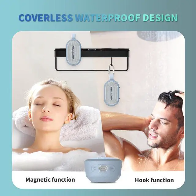 Waterproof Speaker: This magnet wireless Bluetooth shower speaker has IP67 waterproof and dustproof rating, with coverless waterproof and Dustproof design, not afraid of rain and dust, suitable for bathroom shower, pool, beach, etc. and floatable ^^ Multiple Listening Experiences and