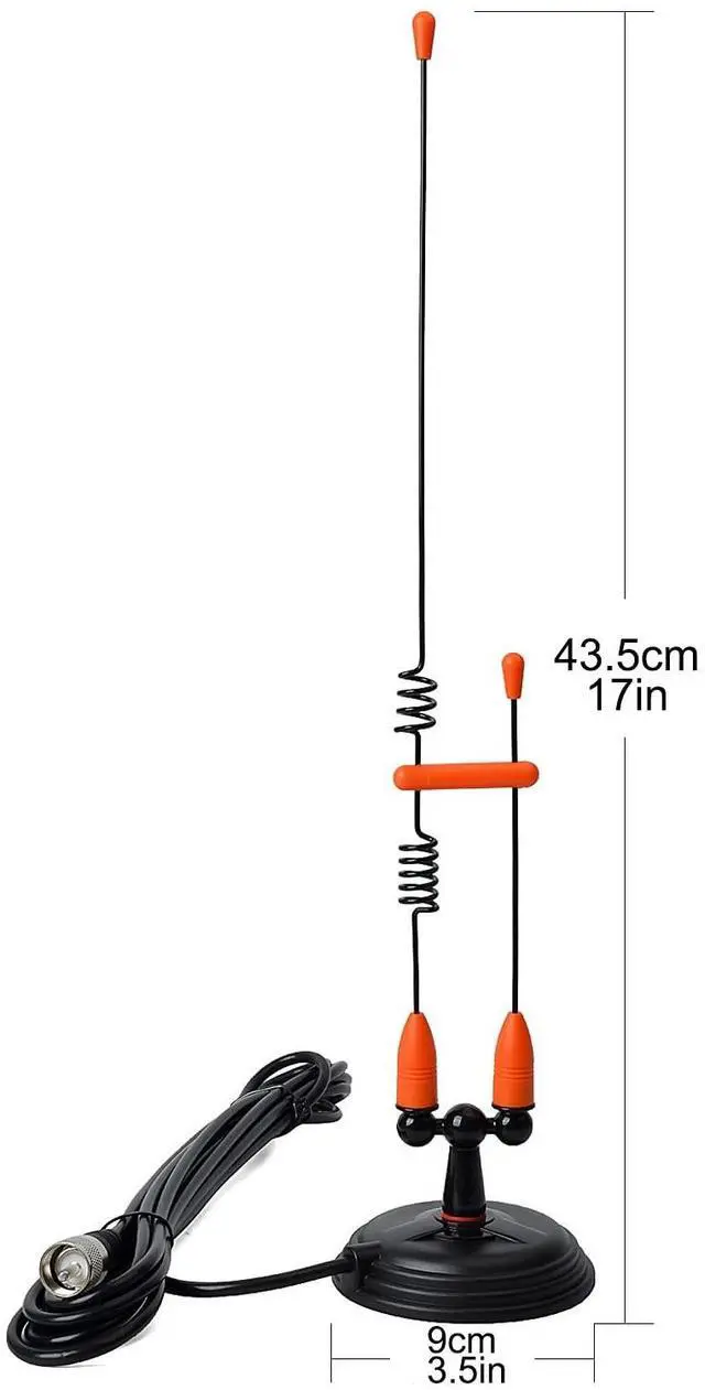 Length: 17inches ^^ The MS10 mobile antenna has a 3.5 inches in diameter magnetic mount. It can provide enough sunctions to fix the antenna on your cars. 13.1FT RG58 Cable and PL259 connector in the end of the cable. ^^ The antenna is made by high quality steel, long service life, excellent effect.