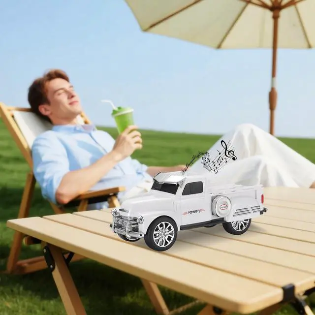 • Unique Pickup Truck Design A cool and stylish replica speaker with movable wheels, perfect for car enthusiasts, desktop decorations, or as a fun surprise gift