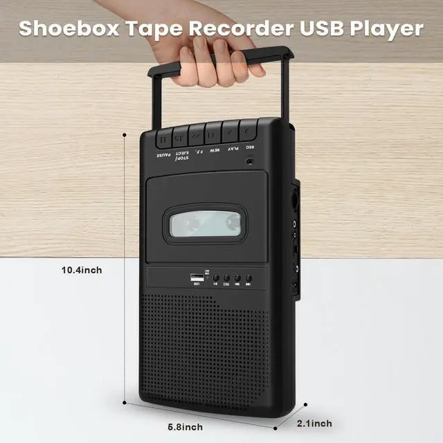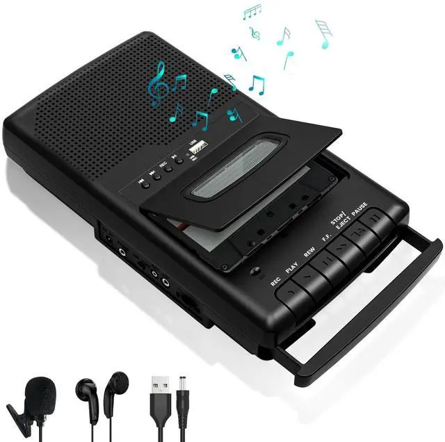 All-in-One Cassette SolutionThis 4-in-1 device works as a cassette tape player, USB player, cassette recorder, and USB digitizer. Perfect for playing old mixtapes, recording new audio, or converting analog tapes to digital MP3 files via USB. Ideal for music lovers, archivists, and retro tech enthusiasts. ^^ Record & Preserve Your MemoriesEasily record audio from USB, microphone, or extern000al sources onto blank cassettes. The built-in microphone and line-in jack offer flexible recording options, helping you capture voice memos, interviews, or vinyl transfers. ^^ Convert Tapes to DigitalConvert your vintage tapes to USB MP3 files with our plug-and-play cassette converter.