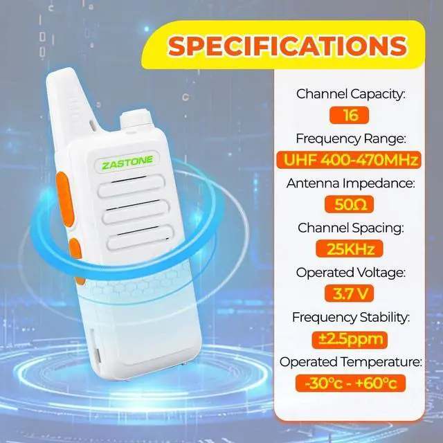 Portable FRS two-way radios; license-free; Zastone X6 walkie talkie can work with other FRS radios with 16 channels on the same channel and CTCSS