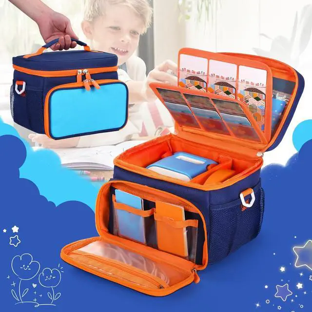 COMPATIEBLE WITHThe bag protected by durable shockproof material, helps machine against scratches and damage during daily life or travel. Case Only ^^ Large Capacity StorageThe bag large capacity allows for daily storage needs, The pockets can store up to 30 cardsIt can also store other daily necessities. ^^ Easy to carry 8.5 * 7.5 * 6.5 ( 21.5 *19* 16.5 cm)Carrying bag is designed with handle and shoulder strap, giving you the option to choose the most convenient way to carry it. Whether it's handheld or over the shoulder can be easily transported for family trips and entertainment both indoors and outdoors.