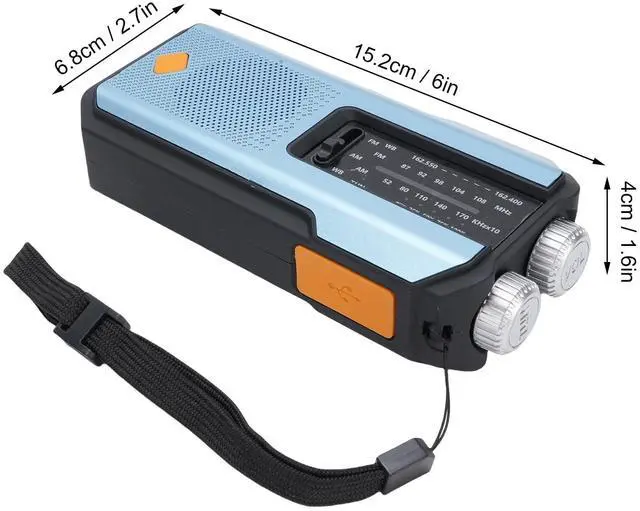 AM FM WB Reception: covers weather band NOAA alerts plus standard radio frequencies for news entertainment and emergency broadcasts. ^^ Multi