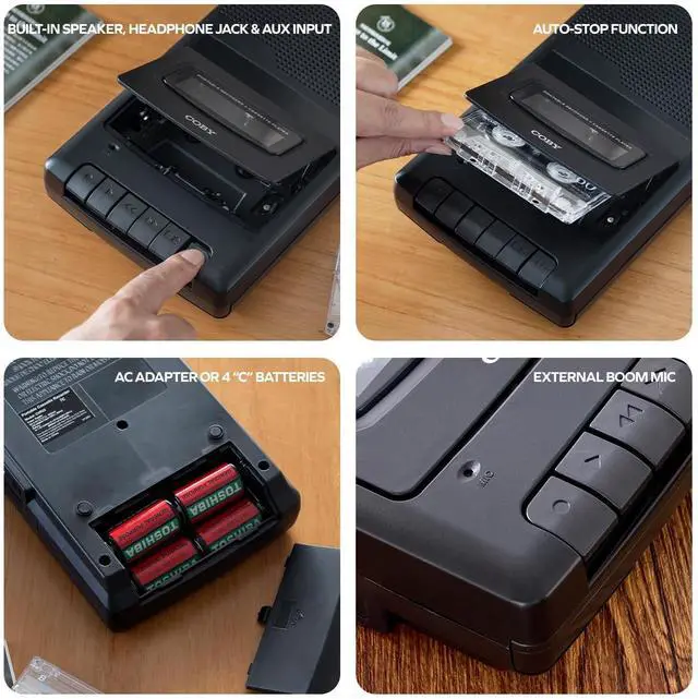 Player & Recorder: Rediscover timeless audio with this COBY portable cassette player. Plays and records your favorite tapes with smooth playback and easy controls perfect for voice, music, and classroom use. ^^ Built-In