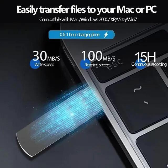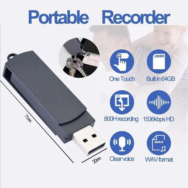 Storage Capacity ]: Our product has a built-in 64GB storage capacity that can store up to 750 hours of files. The product can be fully charged in 2 hours, and it can continue to Work for 48 hours after a full charge. With a low battery auto-save feature, once the battery level drops below 5%, the Product will automatically save your files, so you will never lose any files. ^^ Mini size & time stamp This Product is mini and practical, which is convenient and fast for daily travel and does not take up space in your bag. You can put it in the cosmetic bag, wallet, schoolbag, and hanging on the belt, backpack, car keychain. Each file will be named with a timestamp, making it quick and easy to locate the file on your computer.