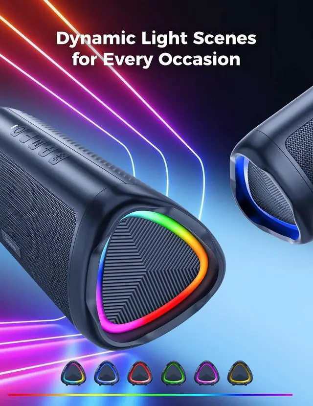 • [Long-lasting Playtime & Extended Bluetooth Connectivity] Experience extended playtime with up to 20 hours(50% Vol and light off) per charge and extended wireless range with Bluetooth 5.3, reaching up to 33 feet from your device. The multicolor lights on the speaker