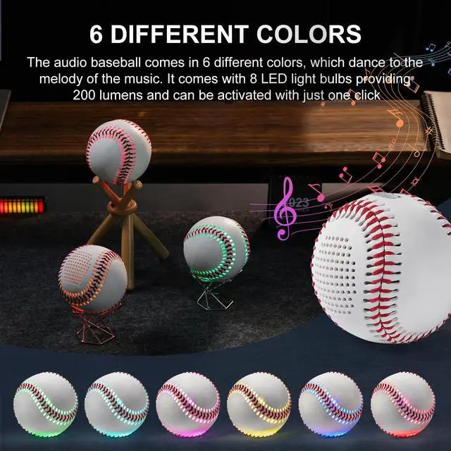 GLOW IN THE DARK BASEBALL WITH BLUETOOTH AUDIO & LED SPARK CATCH EFFECT This 9" glow baseball features a built-in Bluetooth 5.1 speaker delivering stadium-level stereo sound, punchy bass and crisp highs, paired with 6 RGB dynamic light modes that sync to music for a vivid spark catch light show. Its a premium baseball light and the ultimate light up baseball for immersive indoor & outdoor audio-visual fun. ^^ IDEAL BASEBALL BIRTHDAY GIFTS & COOL STUFF FOR BASEBALL PLAYERS Searching for standout baseball birthday gifts or unique cool stuff for baseball players? This multifunctional glow baseball doubles as a light up softball and glow in the dark softball, a one-of-a-kind gift for baseball enthusiasts and sports fans of all ages.