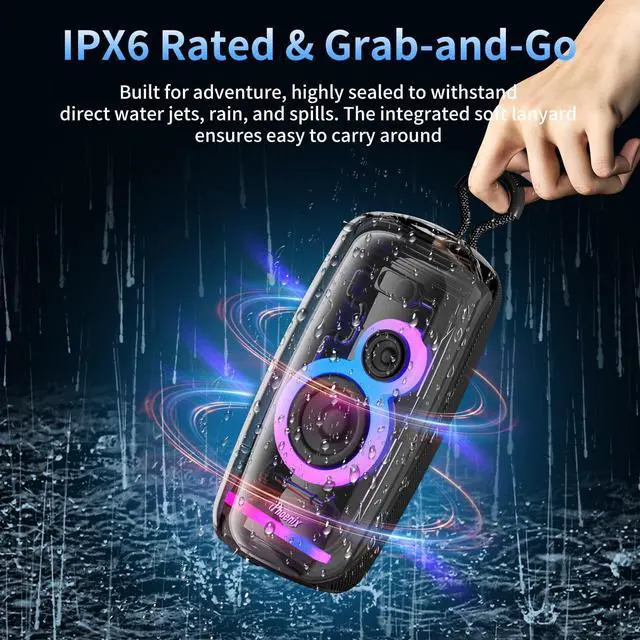 & Ultra-Portable: This Waterproof Bluetooth Speaker is engineered to handle rough use and adverse weather. It is fully protected against dust, shocks, and powerful water jets with an IPX6 rating, making it suitable for outdoor adventures. It's the ideal companion for the shower, pool parties, or the beach. The lightweight design and soft lanyard make it easy to carry for camping, hiking, travel, picnics, and more. ^^ The Perfect Gift for