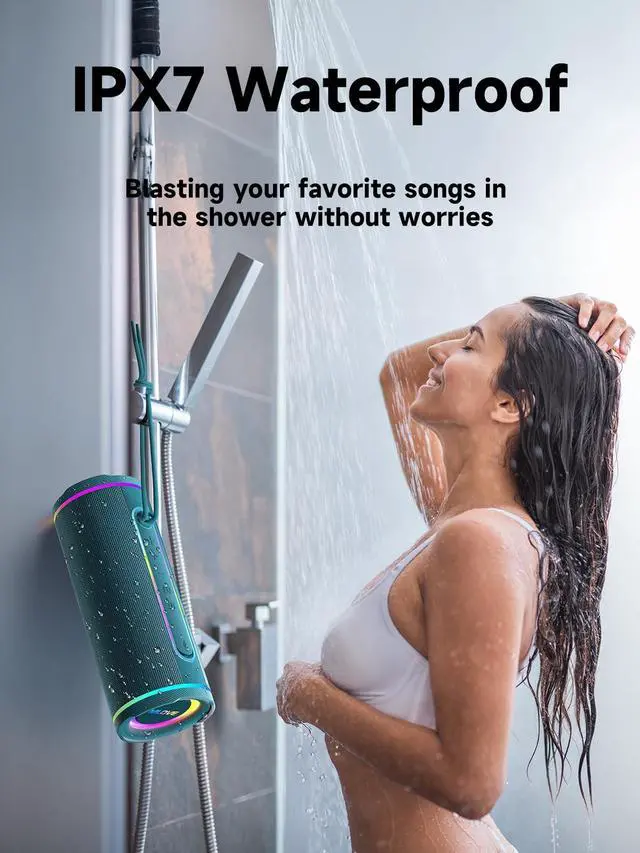 MULTI-WAY AUDIO INPUT - MLOVE E80 portable bluetooth speakers wireless stream premium music wirelessly via Bluetooth 5.4 from any smartphone or tablet with crystal-clear sound. Easily connect older audio sources using a 3.5 mm AUX input cable, you can also enjoy top rated offline listening anywhere by simply plugging in a micro SD card loaded with your music library ^^ LOUD HIGH QUALITY SOUND - MLOVE E80 blue tooth wireless speaker delivers up to 30w loud hd sound with crisp highs, detailed mids or powerful deep bass. DSP technology for noise cancelling, dual passive radiators and EQ adjustment for outdoor bass boost, TWS dual pairing feature allows you connect 2 small bluetooth speakers to enjoy immersive 360 surround stereo sound as computer or tv speaker ^^ ALL WEATHER USE - The portable outdoor waterproof bluetooth speaker with IP67 waterproof and sandproof features is one of the must have electronic gadgets for both outdoor adventures and home daily life from camping trips and hiking trails to beach days and pool side relaxation, as well as home gatherings, parties or bathroom shower, hands-free calling available with built-in mic ^^ AMBIENT LIGHTS - 3 modes color changing lights in the led light up bluetooth speaker, dynamic led lights transform any space into a captivating light show - creating an immersive atmosphere perfect for parties, relaxing baths, workouts.