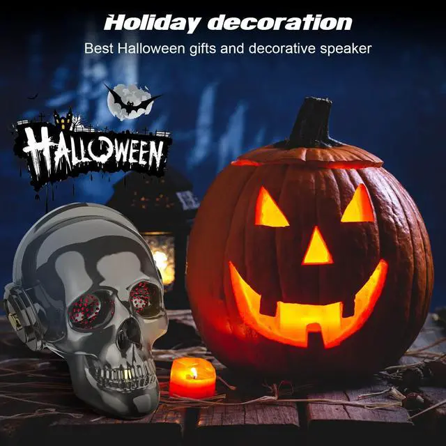 UNIQUE-DESIGN---- The Skull shape designed, this wireless skull speaker is carrying powerful stereo speaker with high-quality smooth and Cool LED eyes light you can either use this for home decoration or marvelous party playtime, you can listening to audio books in the bedroom at night, or playing music while cooking, this product will go everywhere with you. ^^ BLUETOOTH CONNECTION---- The bluetooth 4.0 technology with CSR8615 bluetooth module. This skull bluetooth speakers can easy connect to laptop, tablet, smart phones and cars via wireless bluetooth. Compatible with smartphones from every generation that has Bluetooth, offers you instantaneous connection and longer bluetooth connectivity range of 10 meters.