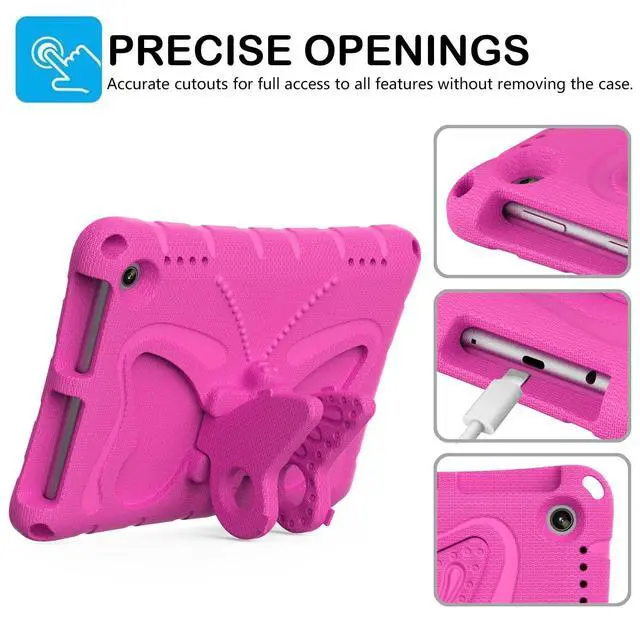 Compatibility model-This tablet case is compatible for Kindle Fire HD8/HD8 Plus (2020/2022) versions, not suitable for other modelsplease check your tablet model carefully before you buy; ^^ Detachable shoulder strap-The shoulder strap makes it easier to carry your tablet around while traveling or doing outdoor activities, It's easy for kids to carry around; ^^ The unique butterfly wings as kickstand-The butterfly wings are adjustable kickstand, that allows the baby to watch videos and learn, keeping the baby at a suitable distance and protecting the eyes. At the same time, the butterfly wings can be folded, which saves space and is easy to carry; ^^ Quality Material-This tablet case is made of high-quality EVA materials, Light weight, wear-resistant, shockproof, environmentally friendly, non-toxic, non-slip and strong grip.