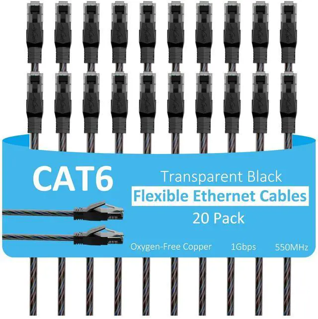 Cat6 Ethernet Cable 4 FT (20-Pack), Snagless Cat 6 Patch Cable, Upgraded Transparent Flexible PVC Jacket, OFC Oxygen-Free Copper, 1Gbps, Internet Network Cable, Cat6 Cables, UTP, Black Cable -20 Pack